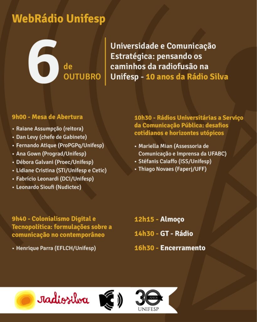 A Rádio Silva completa uma década de história e inicia uma nova fase: ela se tornará a WebRádio oficial da Universidade Federal de São Paulo (Unifesp). A celebração e o lançamento da nova etapa acontecem no dia 6 de outubro.